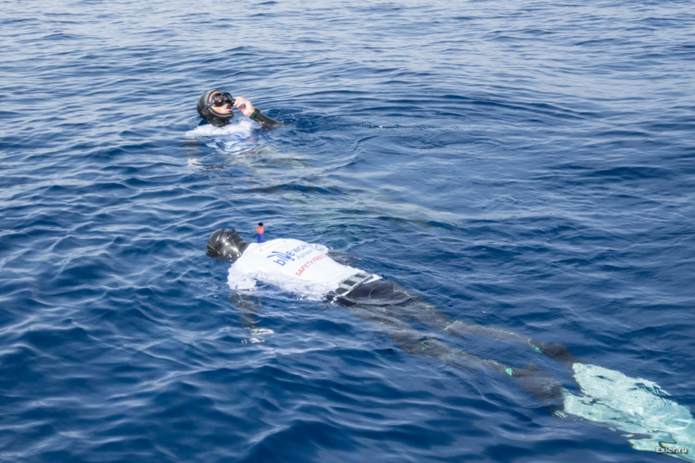 Наталья в это время делает заплыв вокруг места погружения - отдыхает.