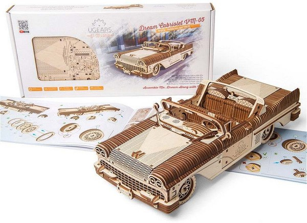 UGEARS – это конструкторы из натурального дерева. Собираются без клея или каких-то инструментов: все детали уже заранее вырезаны на лазерном станке, в комплекте понятная и подробная инструкция. Готовые модели получаются действующими: они механические, двигаются на резиномоторе. В общем, просто отличный подарок и отличная распродажа!
