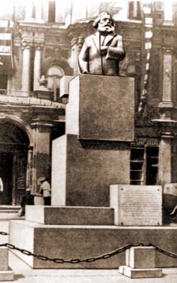 «Слов для описания черного бюста Карла Маркса, поставленного перед Думой в обрамлении белой арки, у меня нет. Я не знаю, какой художник сотворил его, но это недопустимо. Необходимо отказаться от мысли, что изображение знаменитого германского ученого может вылепить всякий, кому не лень.Трехлетняя племянница моя, указав на памятник, нежно говорила: