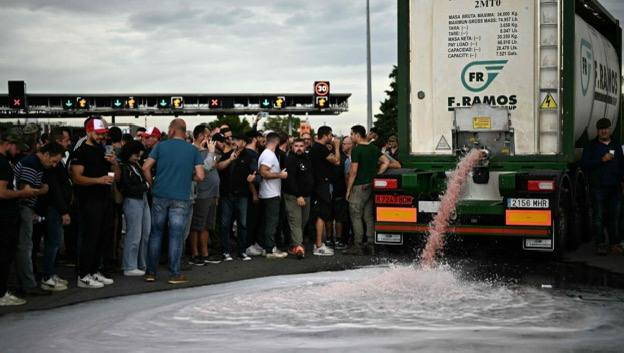 Такая история, насколько я помню, происходит чуть ли не каждый год. Французские виноделы на границе с Испанией останавливают грузовики, выливают вино из емкостей и бьют бутылки. Испанское вино - дешевое и качественное, а кто же хочет такой конкуренции? Я первоначально удивлялся, когда видел в испанских магазинах много французов, которые испанские вина ящиками грузили в машины. Потом удивляться перестал.