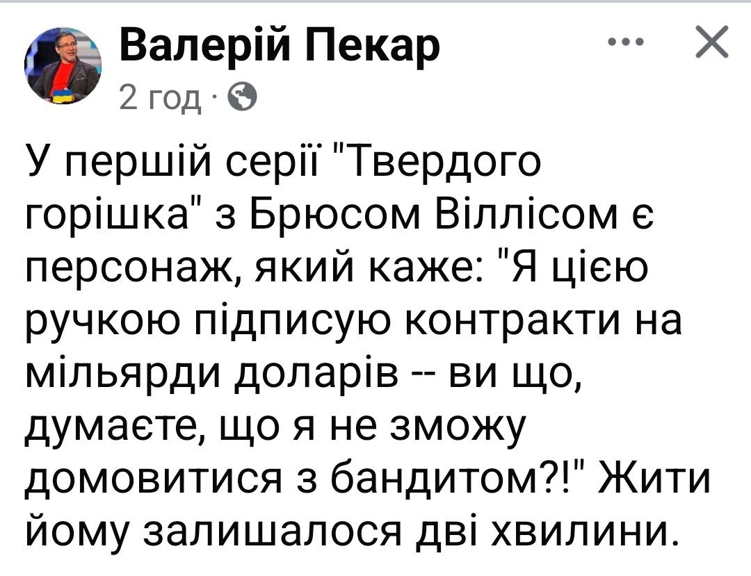 По Яковине. Он увидел там положительное только в том, что поставляется на текущий момент оружие (а это не эти переговоры, имхо) и то, что в фразе Трампа "продолжаем работать" находится другой смысл. То есть Яковина немного пофантазировал (о чем сам и сказал) и на этой фантазии выдал небольшой оптимизм. Вы предлагаете это как серьезную аналитику?