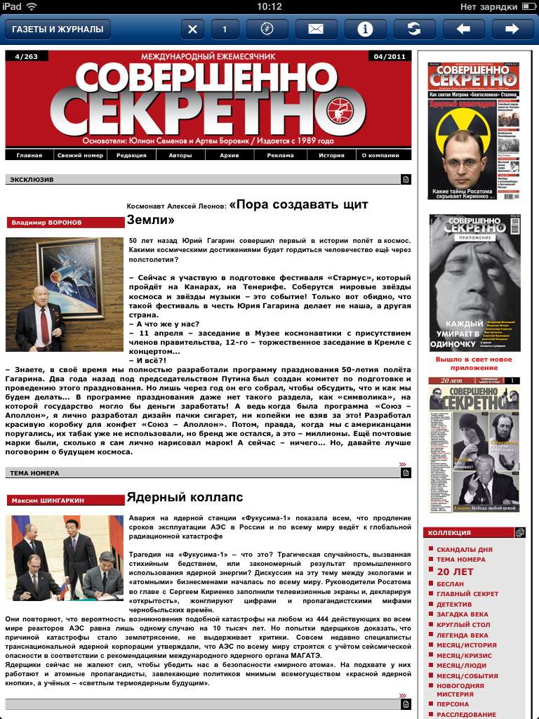 Алекс, а что за приложение на последнем скриншоте с газетой "совершенно секретно"? AppStore ничего не нашел на слово "совершенно"...