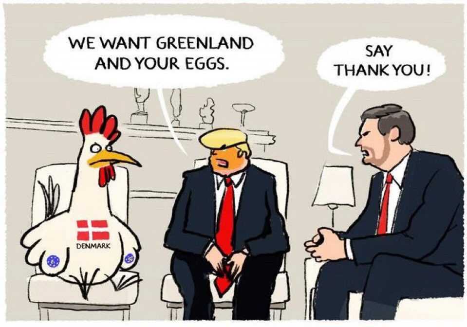 Кстати, тут пишут что от Дании уже не только Гренландию требуют, но и яйца.