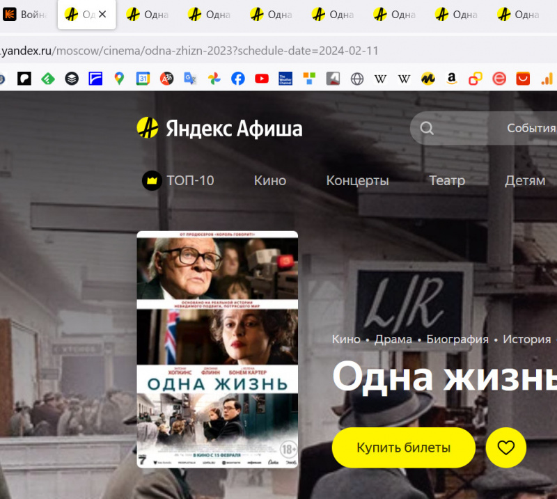 >>> ...сразу десять одинаковых вкладок Яндекс.Афиши с рекламой одного и того же фильма.