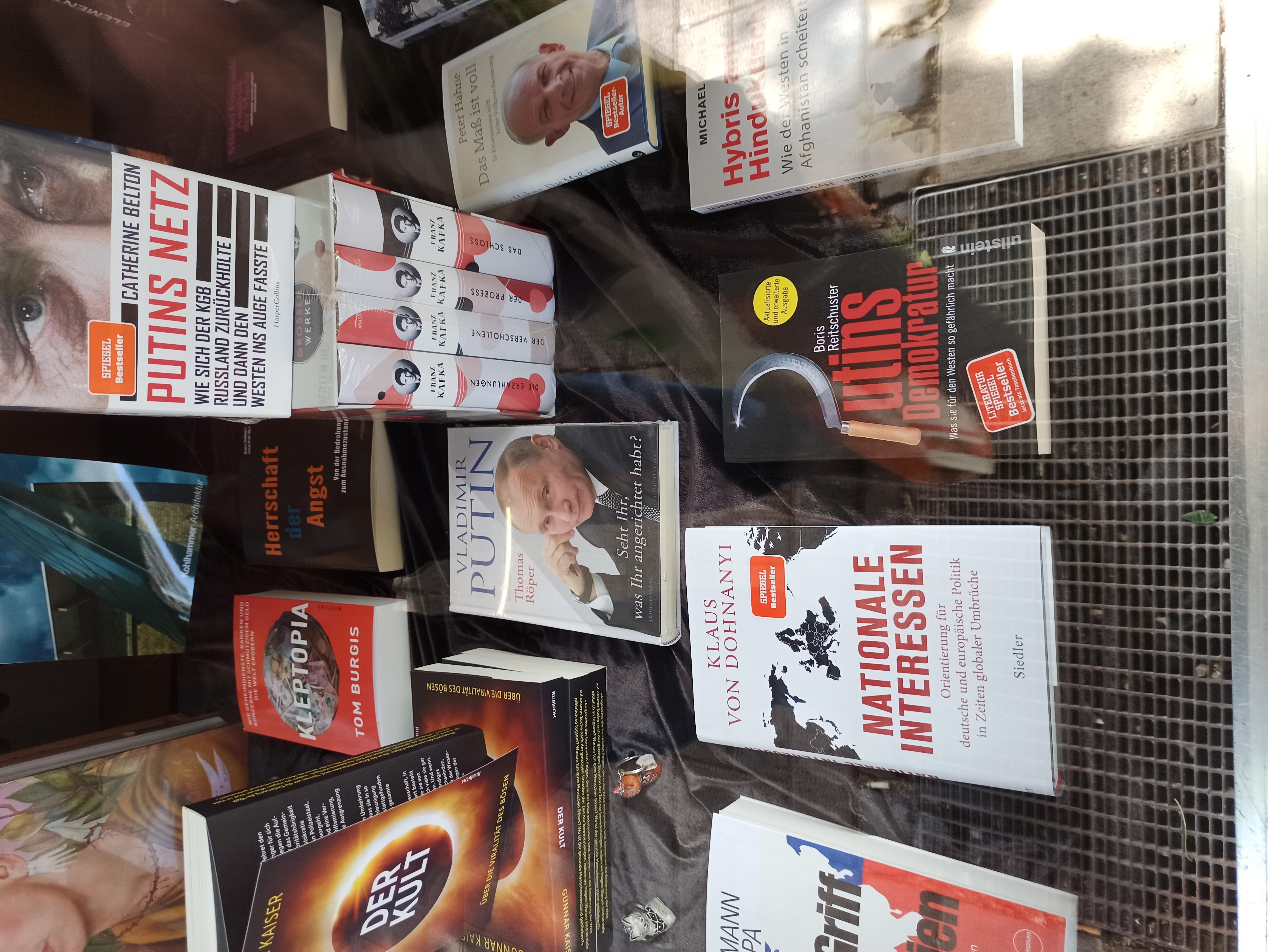 Я тут вчера проходил мимо книжного магазина в Германии - не удержался, чтоб фото не сделать. Названия книг: