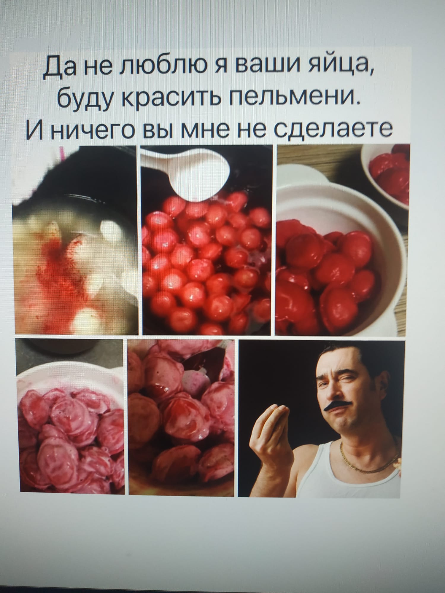 Тут процесс обратный - не соприкасать с усилием два яйца, смотря, у кого не разбилось, а разъединять с усилием два пельменя, смотря, у кого не прорвался.