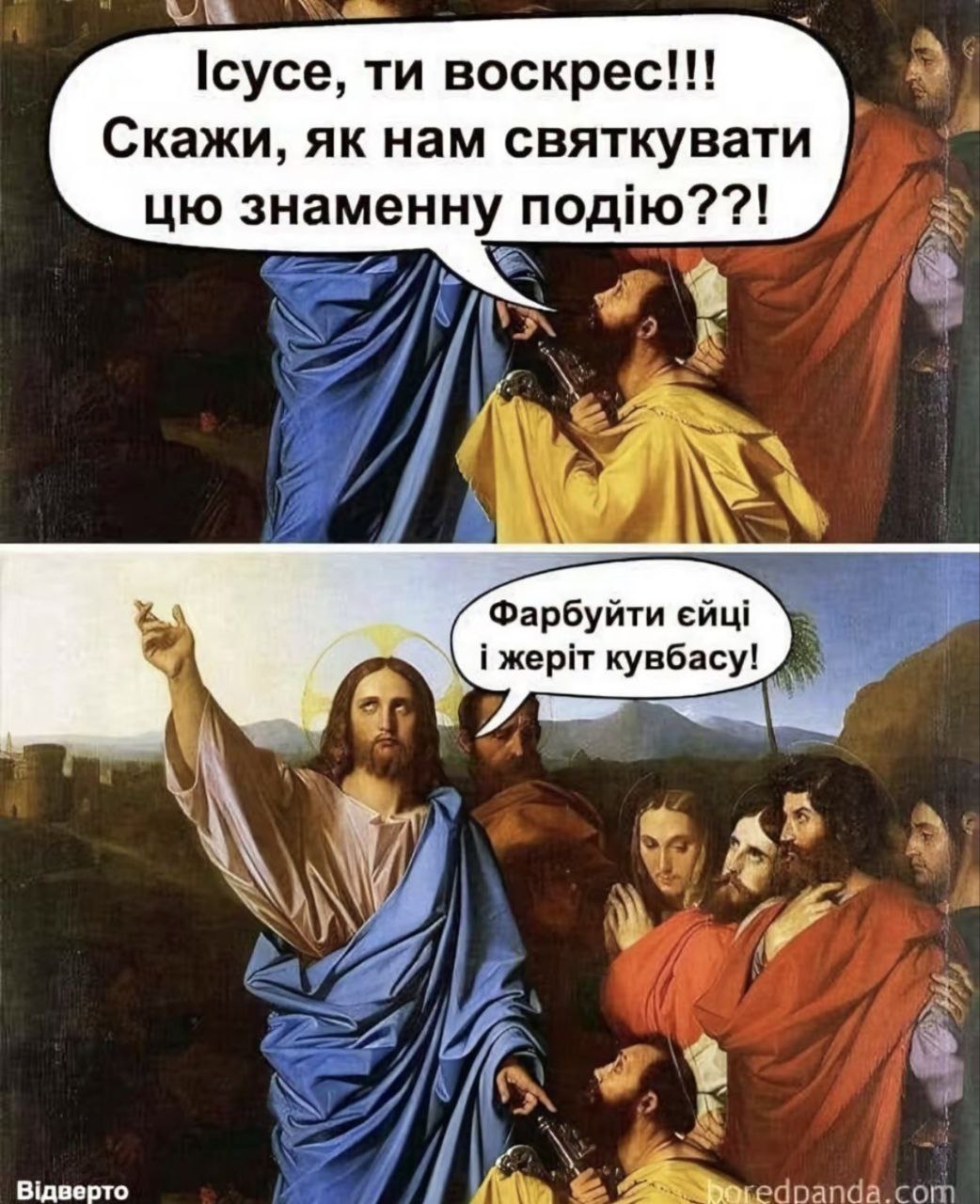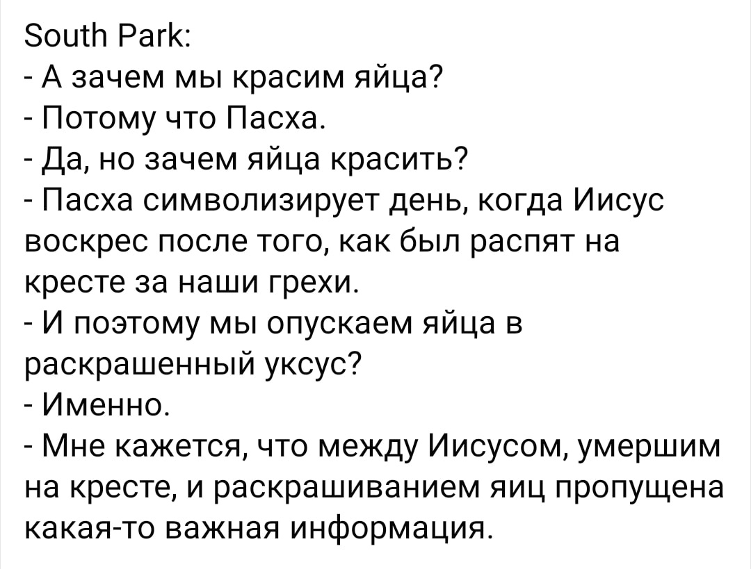Я обычно спрашиваю- а как это у вас на Пасху Иисус воскрес, если в Библии чёрным по белому написано, что Иисуса на Пасху убили?