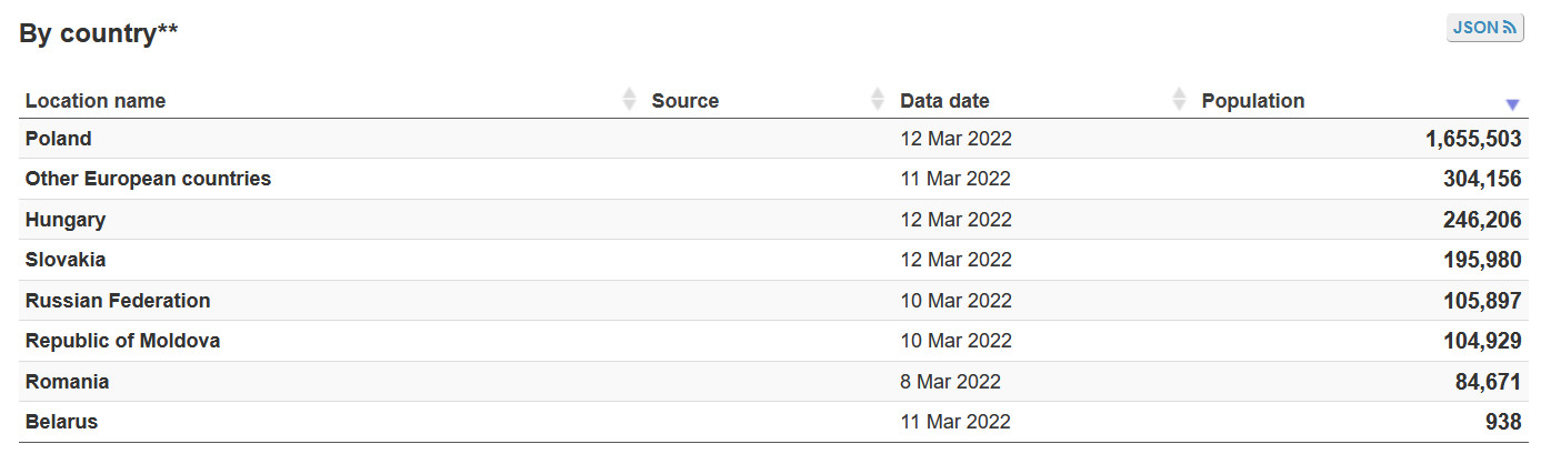 Официальные данные Высокого Комиссариата по делам беженцев ООН (UNHCR), на 11 марта.