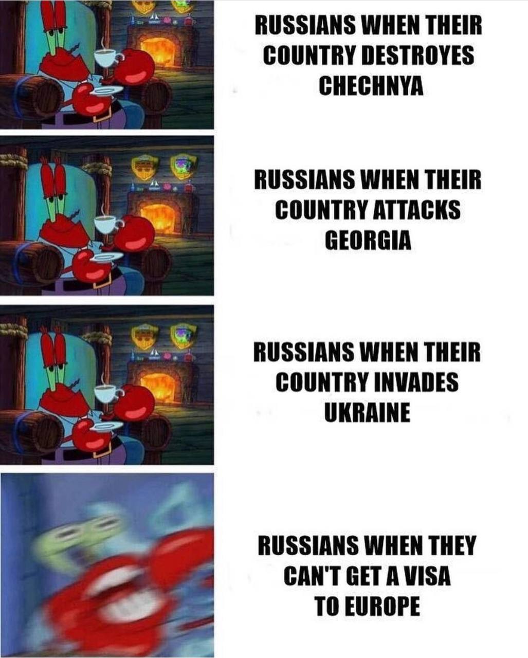 А вообще это забавно. Россияне страдают под сапогами захватившей власть шайки уже 22 года и всем пофиг, все только за. А когда шайка расширила область своего обитания, виноваты оказались почему-то россияне. Victim blaming во всей красе.