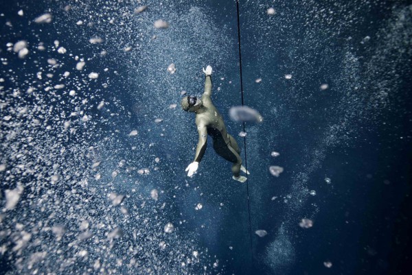 Guillaume Nery в Dean's Blue Hole. Снималось 4 дня его девушкой (Julie Gautier) тоже на задержке дыхания