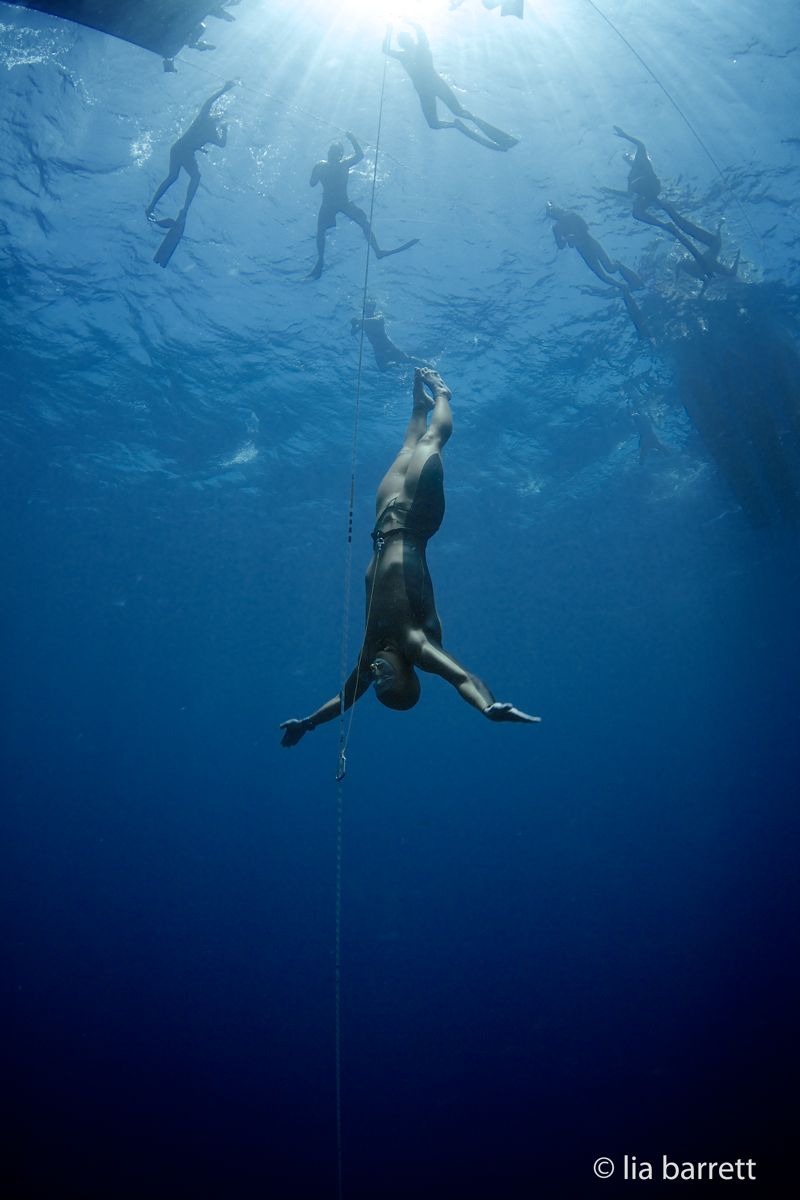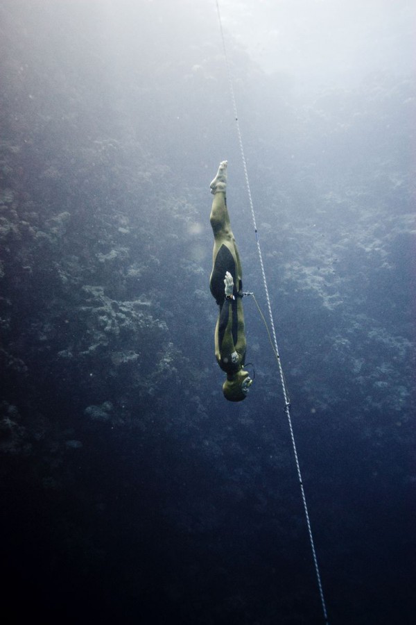 Эти соревнования проводятся в открытом море. Фридайвер погружается вертикально в глубину.