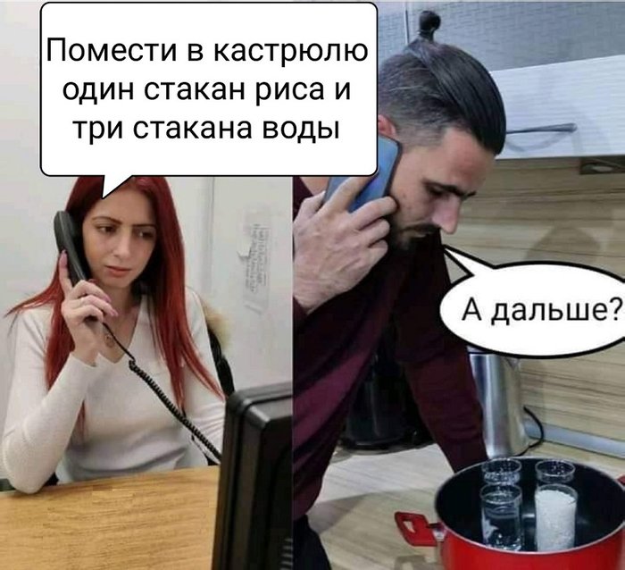 «стакан риса и три стакана воды в кастрюлю».