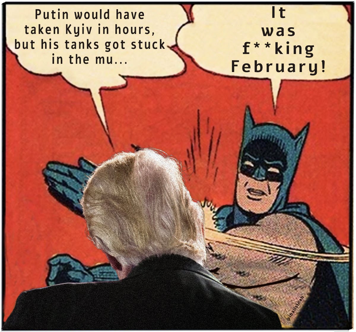 Интересно, Трампу кто-нибудь расскажет, что Путин уже более трех лет запускает ракеты и убивает людей? И что в 2014 году он устроил войну в Украине, в результате которой погиб не один десяток тысяч человек? А то странно как-то, был же всегда хороший парень, этот Володя. Что с ним такое случилось? Может, съел что-то не то?