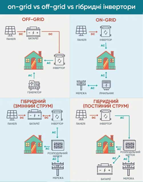 On-Grid системьі - самьіе дешевьіе, но даже на них можно повесить небольшой инвертор для внутридомовьіх нужд.