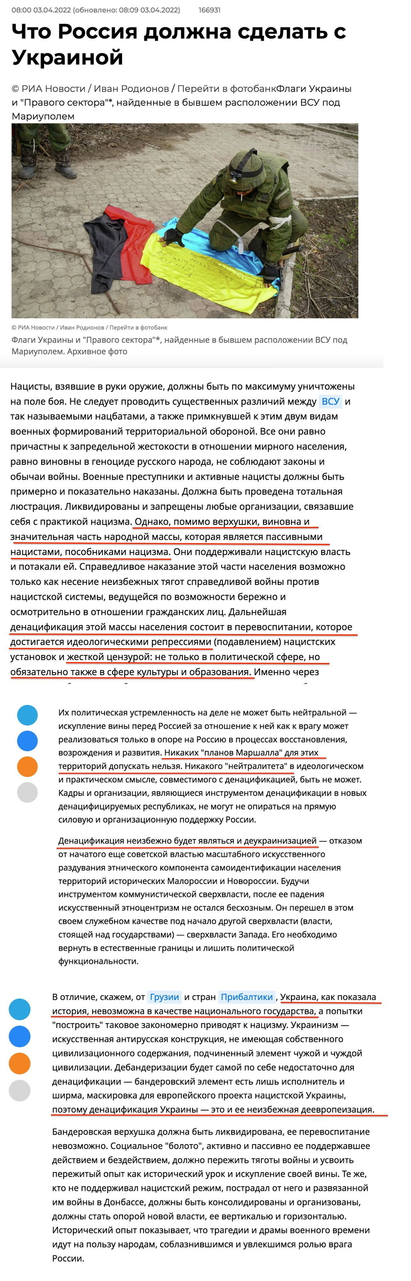 Еще одно доказательство того, что вчерашние фото и видео Буча-Гостомель-Ирпень-Житомирская трасса не эксцесс исполнителя. Это была целенаправленная, спланированная резня. Ну 45т мешков для трупов, новые недавние стандарты братских захоронений, мобильные крематории, учитывая что мародеры, шедшие на Киев, не ожидали сопротивления.... Предназначались для нас. И статья это прекрасно оттеняет. Спасибо конечно, но мы урок выучили еще в 2014 году.
