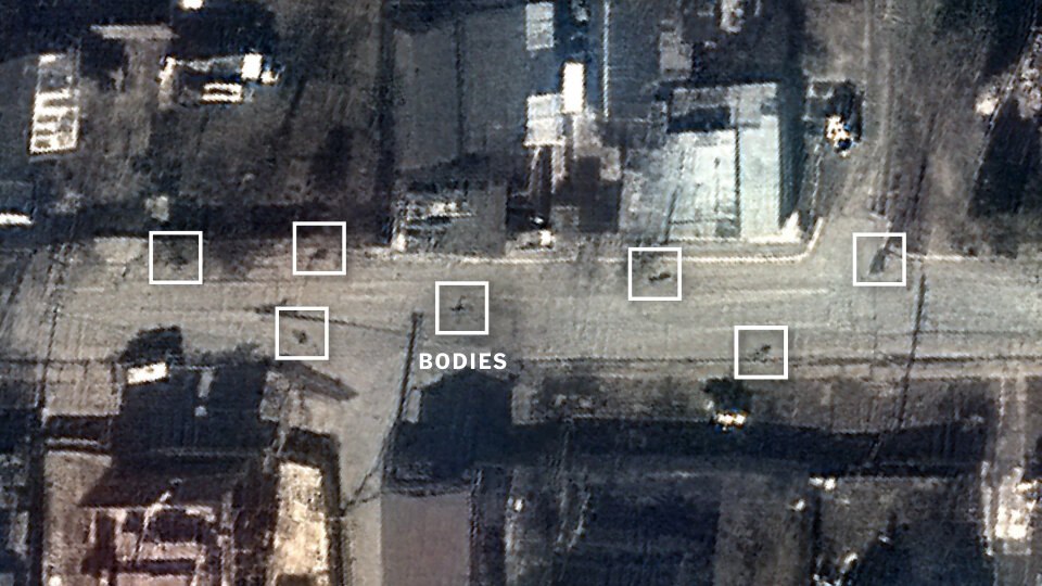 Вот тут выложили "фото со спутника" от 28 марта, типа все "трупы" на видео с машины уже тогда лежали там же и в тех же позах. Они что, людей совсем за дебилов считают? Вы когда-нибудь видели труп, пролежавший не в холодильнике хотя бы день, не говоря уж о пяти днях? То-то же.