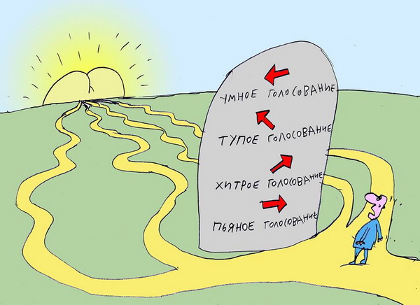 По поводу предстоящего голосования существует несколько стратегий. Есть так называемое "умное голосование", предлагаемое Навальным. Есть "глупое голосование", предлагаемое Белковским. Есть "ходорковское голосование", предлагаемое Ходорковским. Есть стратегия "бойкот голосованию, никуда не пойду". Ну и есть стратегия "Пойду, но испорчу бюллетень".