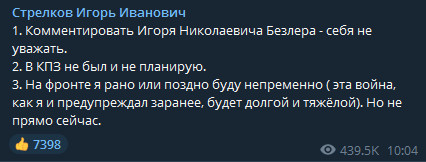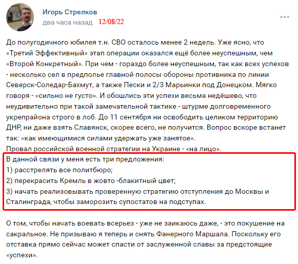 гиркин это пешка в игре фсб и армии, понятно, что ему разрешают писать то, что он твитере пишет, Арестович просто отлыхает,