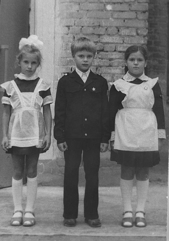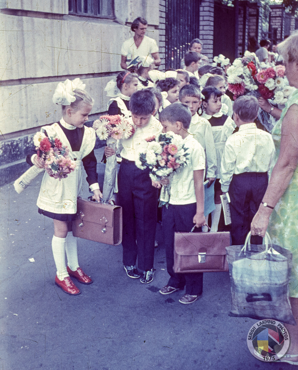 Где-то в середине августа моя будущая классная руководительница Марья Павловна позвонила родителям и попросила, чтобы я выучил какой-то стишок, буквально, четверостишие. Любое. Память у меня всегда была хорошая, я знал и стихи, и песни, но, вероятно, родителям не хотелось, чтобы я читал: "Мой друг уехал в Магадан,- снимите шляпу..." (я вообще всю песню наизусть знал). А у меня тем летом была книга "Чудаки". Сборник весёлых стихов. В ней, например, был стишок "Симонов Сазон воробьев кормил. Бросил им батон - десять штук убил". Вот, я выучил: "Велосипед меня повез, повез куда-то под откос. Но там остался без колес - и дальше я его понес". Я думал, что этот стих я буду читать на линейке. Черта с два! За неделю до 1го сентября меня и еще нескольких будущих одноклассников собрали в школе (с родителями) и дали написанные стишки. Тема была общая: как мы, первоклассники, хотим освоить все науки. По каждой науке-предмету - свой стишок (если это так можно назвать, уж не знаю, кто эти стишки придумал). Мне досталось такое: "Я хотел бы поскорей овладеть английским, чтобы в космосе беседу мне с Америкой вести!". Напомню, летом 1975г состоялся совместный полет по программе "Союз - Аполлон". Ну, вот это я и прочел на линейке. А те стихи (про велосипед) были нужны только для того, чтобы проверить дикцию и голос. Я был очень злой: я-то думал, что именно про велосипед я буду читать на линейке.
