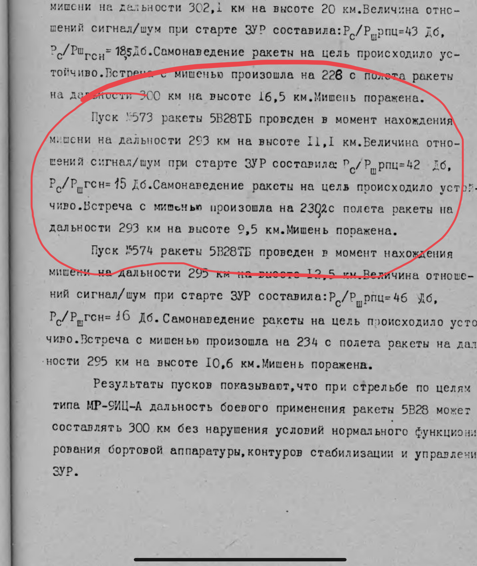 Нас интересует цель на высоте 11 км, что весьма близко к высоте полета на эшелоне пассажирских лайнеров. Согласно этим испытаниям, ракета преодолела 293 км за 230 секунд, что весьма близко к 4 минутам от пуска до поражения Ту-154. Особенно если учесть, что траектория ракеты на начальном участке была длиннее, чем на испытаниях, так как она сначала наводилась на мишень.