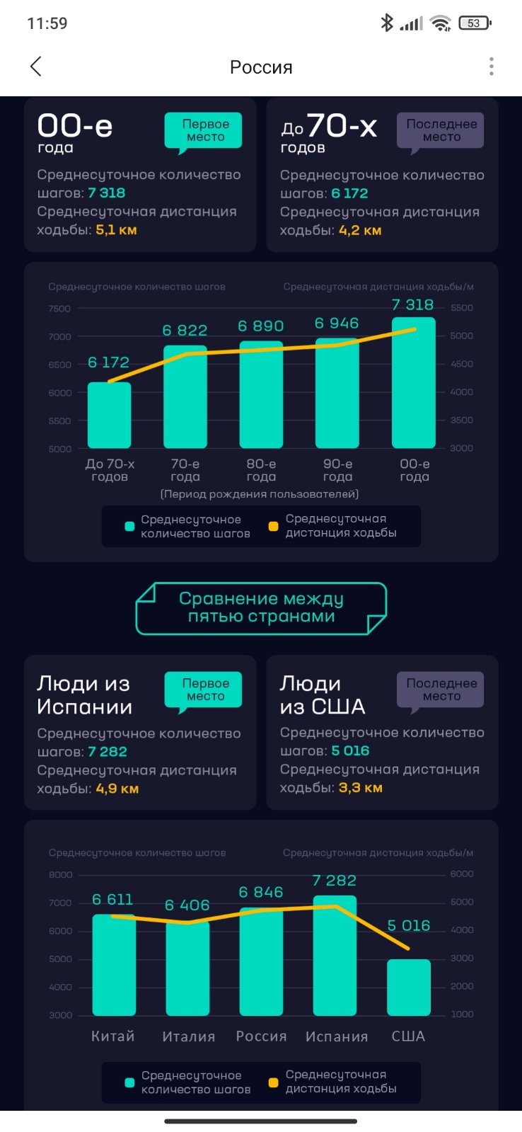 Кстати, в приложении Зепп выложили отчёт о физической активности за прошлый год в разрезе пяти возрастных категорий из пяти стран. По ходьбе лидирует Испания. Наверное Алекс Борисович весомый вклад сделал в это достижение 😄