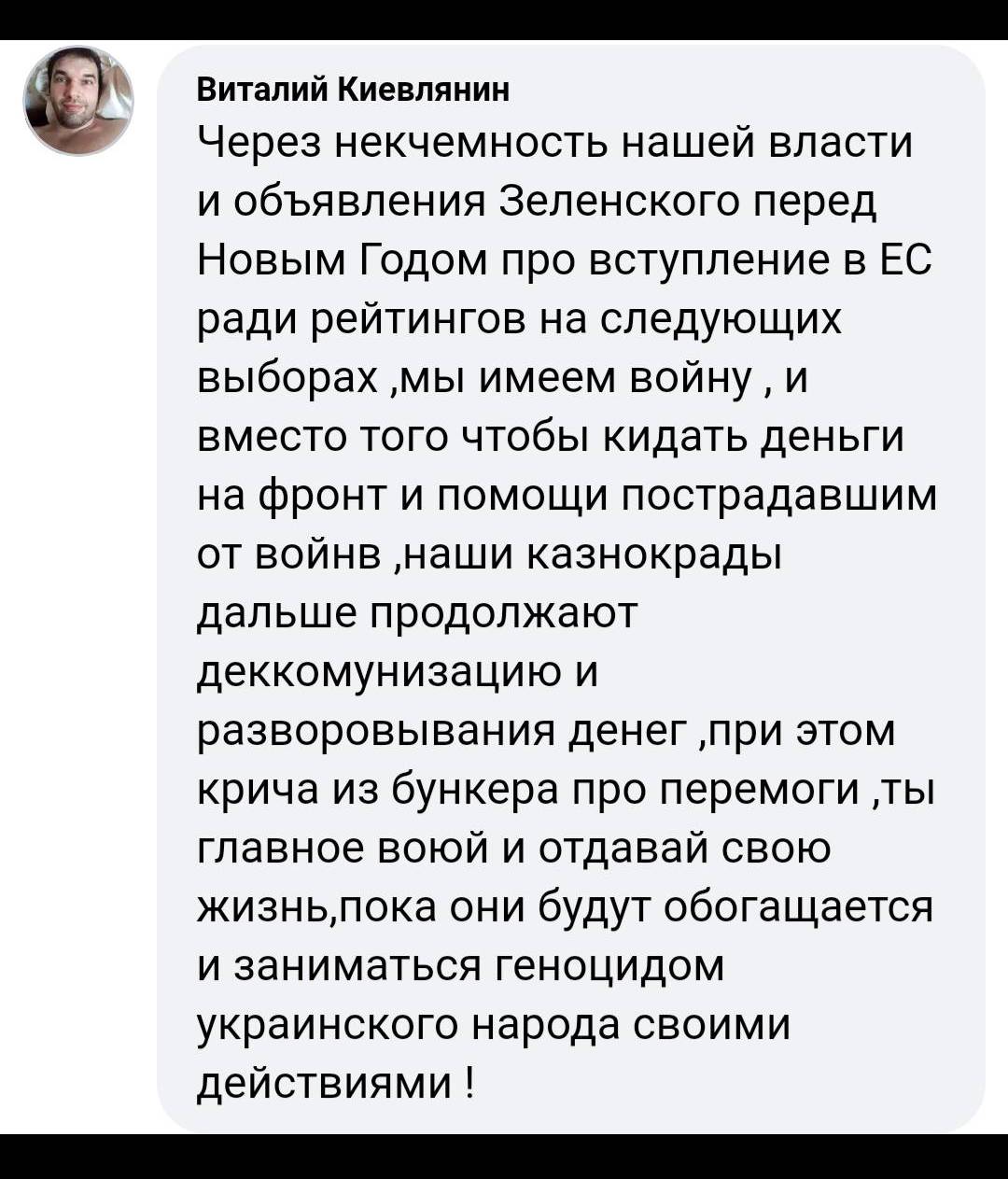 Это не я придумал. Это из скриншота, который я двадцать минут назад получил в телеграме. Я даже нашёл это существо в фейсбуке, в профиле написано, что из Киева, имеет высшее образование. Но проверить никак нельзя. Либо реальный человек и пациент Кирилловской, либо тролль с фейковыми данными.
