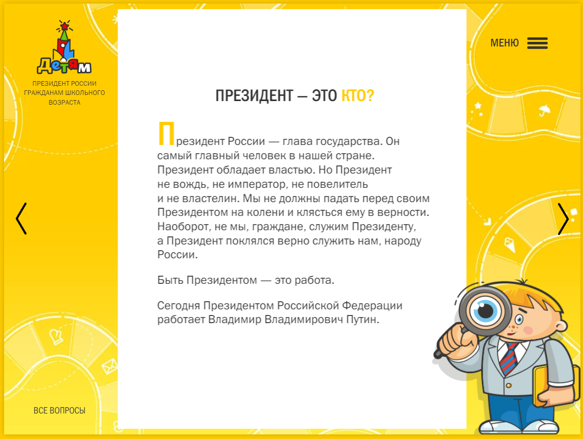 Президент - глава исполнительной ветви власти, это тоже вполне можно донести до школьника.