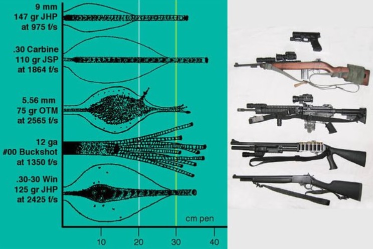 И, кстати, прошить все можно. Если речь о специальных пулях, пробивающих даже броню. Но в большинстве случаев стреляют из таких вот пукалок, которые хороши против людей безо всякой защиты.