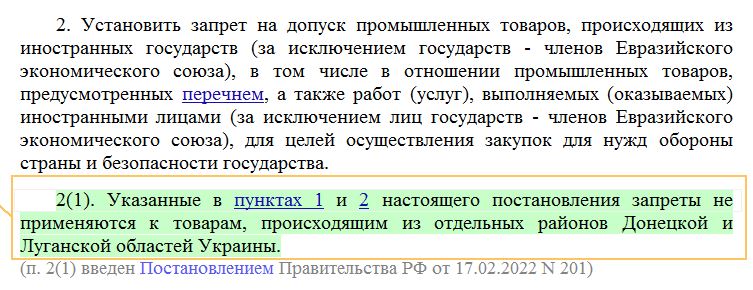 "С 17 февраля 2022 года прекратить применение режима иностранного поставщика для предприятий ДНР и ЛНР".