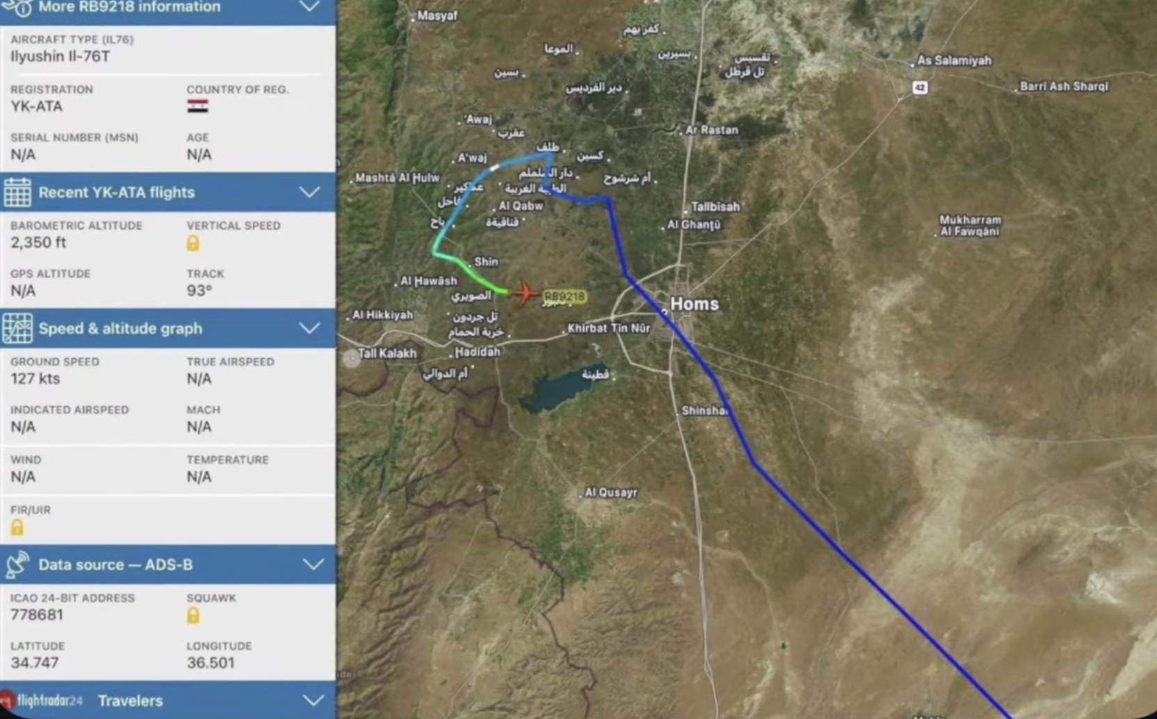 Улетел вроде в ОАЭ, но возможно конечная точка - Ростов.