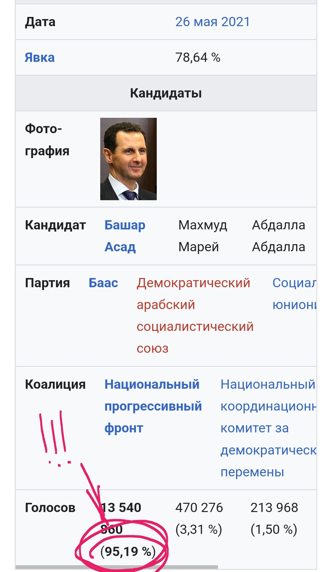 За Асада на президентских выборах проголосовало даже больше чем за Путина.