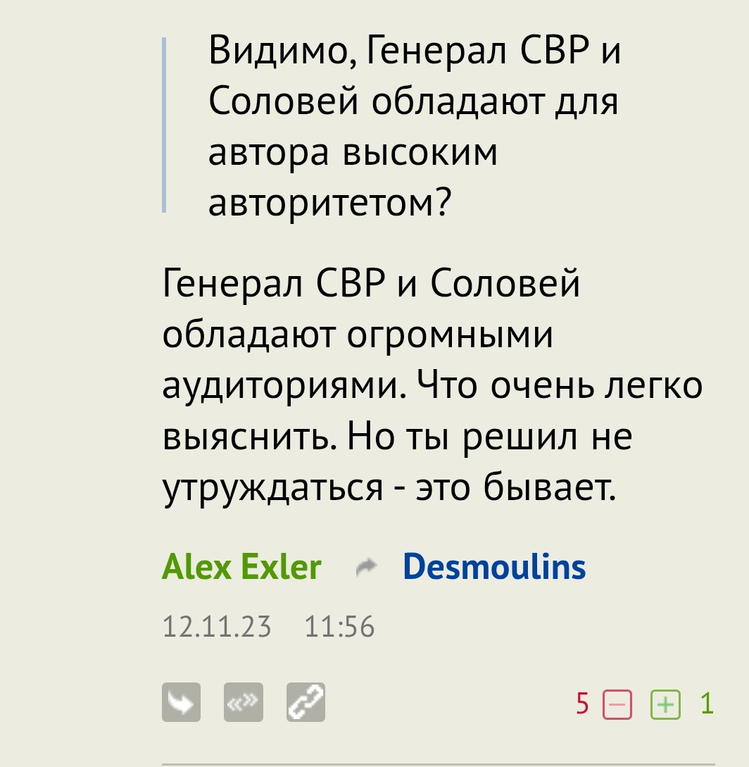 Но сигналы которые он подаёт тревожные, это правда. Как минимум он позволял например себе оскорбительный стёб над украинским президентом, чего я не помню чтобы он делал в адрес российского. И плюс куча других довольно диких заявлений, не только про Украину, но и про НАТО например.