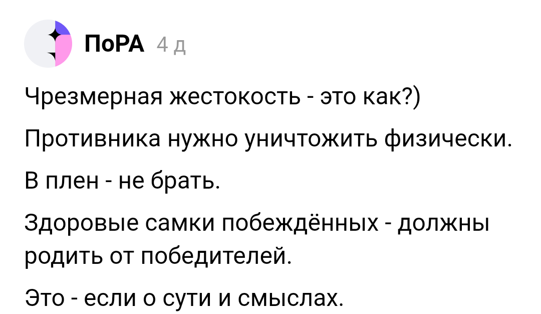 Тут же важно понять, что если человек срет на свою Родину, он прежде всего срёт на своих ближайших родственников, а не на какую-то там абстрактную государственную машину.