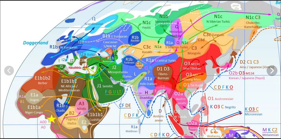 Читала, что в большей части генома наибольшее разнообразие наблюдается у африканцев. Что подтверждает теорию происхождения всего неафриканского населения Земли от небольшой группы мигрантов, а африканцев - от оставшегося в африке большинства.
