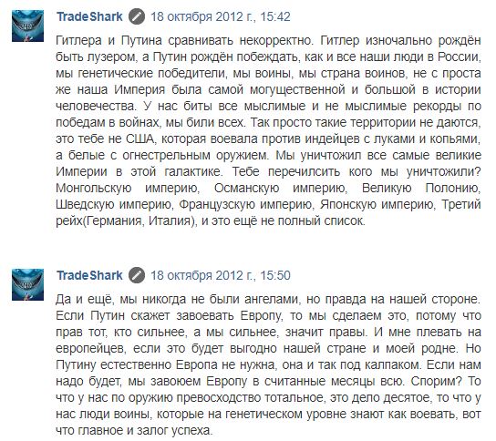 Поэтому считаю, что совершенно напротив – "наивно и ограниченно" считать этих господ какими-то якобы "ненормальными ультра-патриотами с манией величия" (как получается по вашим словам, а также по мнению некоторых оппозиционных деятелей).