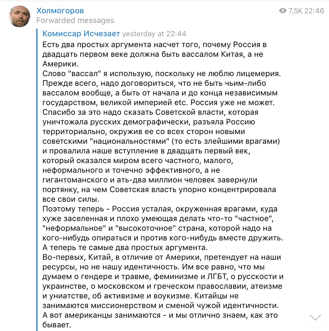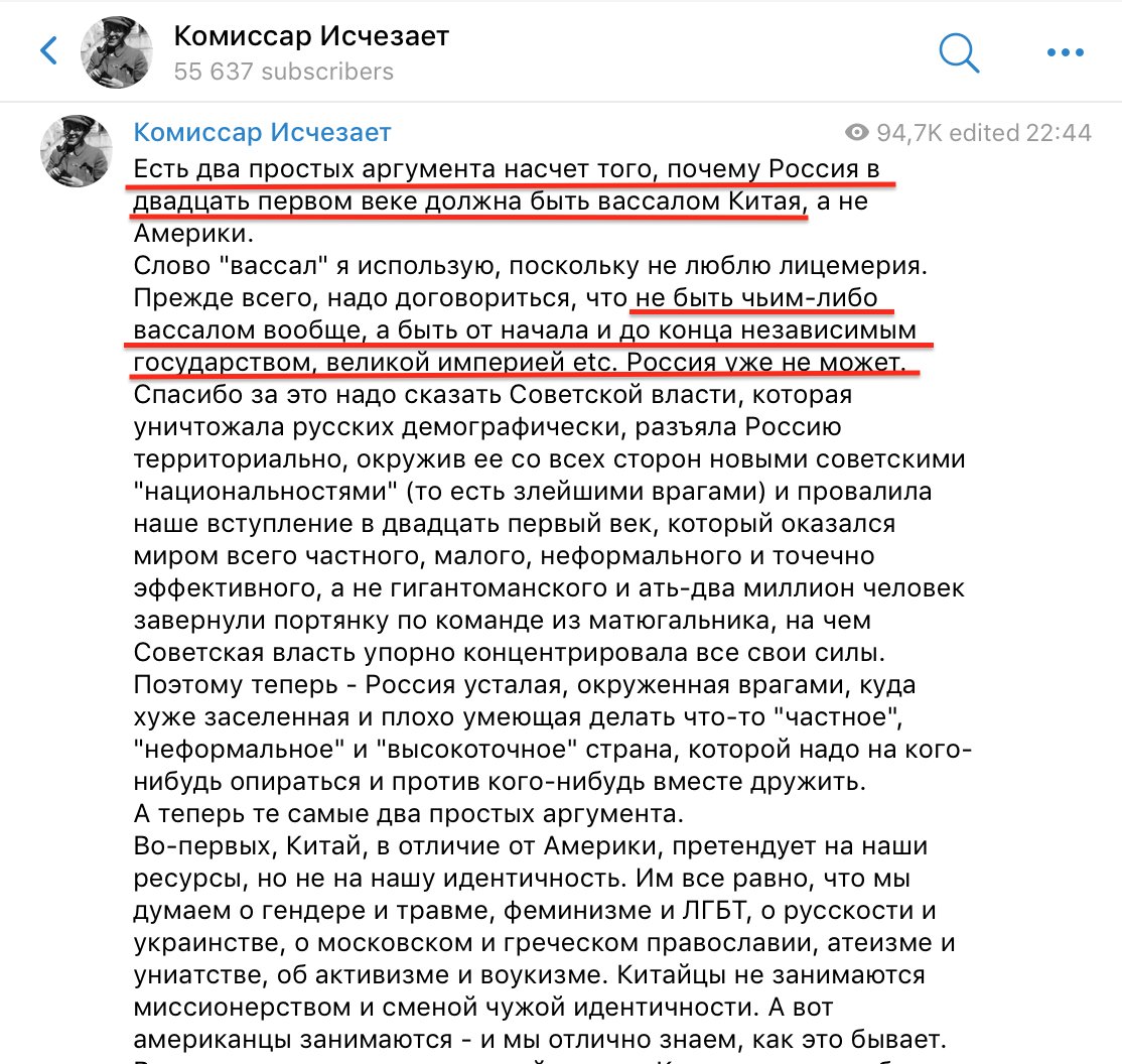 Вообще не разделяю теорию о подчиненности Путина китайцам, хотя она "многое объясняет".