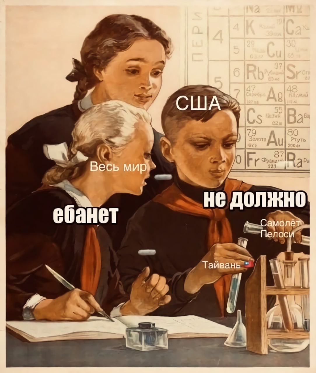 Так в чем проблема, признавай Тайвань, принимай в альянс, дай гарантии и потом уже делай чё хочешь. А иначе получается как-то безответственно. Вроде как поддерживаем и одновременно не признаем. Начнётся заварушка и непонятно что сделаем. Начнем воевать с Китаем? Маловероятно, тут за страну в центре Европы не особо хотят, по сто раз подчёркивают что воевать с РФ никто не собирается.