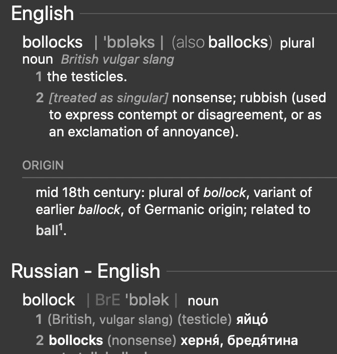 "Bullocks ... A term Americans mistakenly use when they really mean to say bollocks".