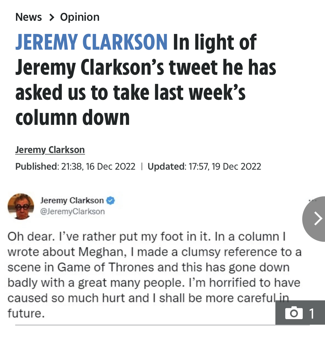 Так Кларксон мало того, что хочет заставить её пройти голышом, так призывает людей собраться и говном в неё кидаться.