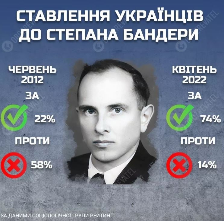 Л. Ребет категорически отвергал тезис «Украина для украинцев», утверждая, что «украинский народ, будучи в Восточной Европе народом со старейшей земледельческой культурой, должен быть также глашатаем передовых идей человечества на тех просторах. Украина может и должна стать образцом политической культуры для всего окружения и вместо тирании, которую столетиями на Востоке представляла русская — белая и красная — империя, показать образец модерного демократического государства, где воля и достоинство человека не пустой звук»". Что в этом нацистского? Наоборот, именно сейчас такая ситуация, о чем и писал Ребет. Так что удивляться 74 процентам поддержки Бандеры не нужно. Наоборот, что остались еще целых 14 процентов дремучих савков, вот удивительно.