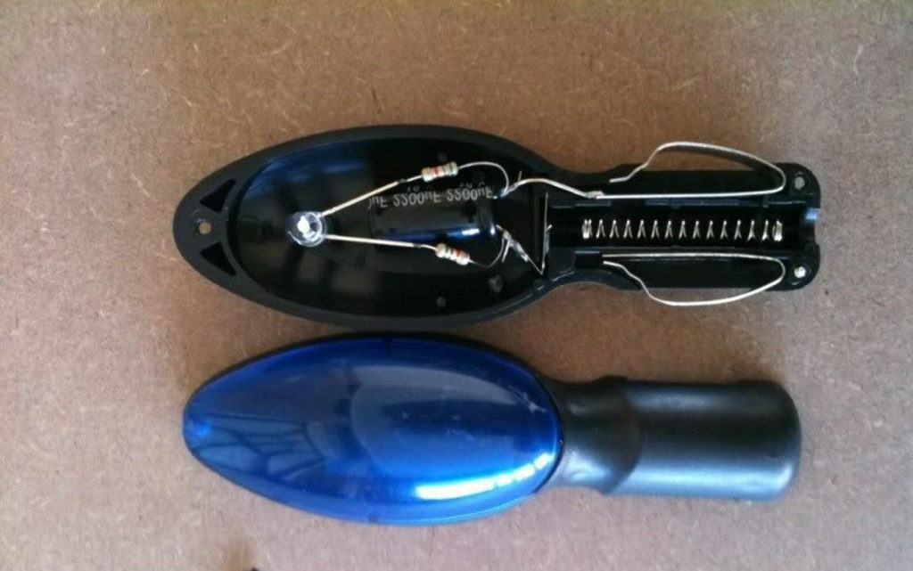 Но, кажется, изначально она позиционировалась как воздействующая электричеством, а моргание светодиодом было побочным эффектом, для проверки.