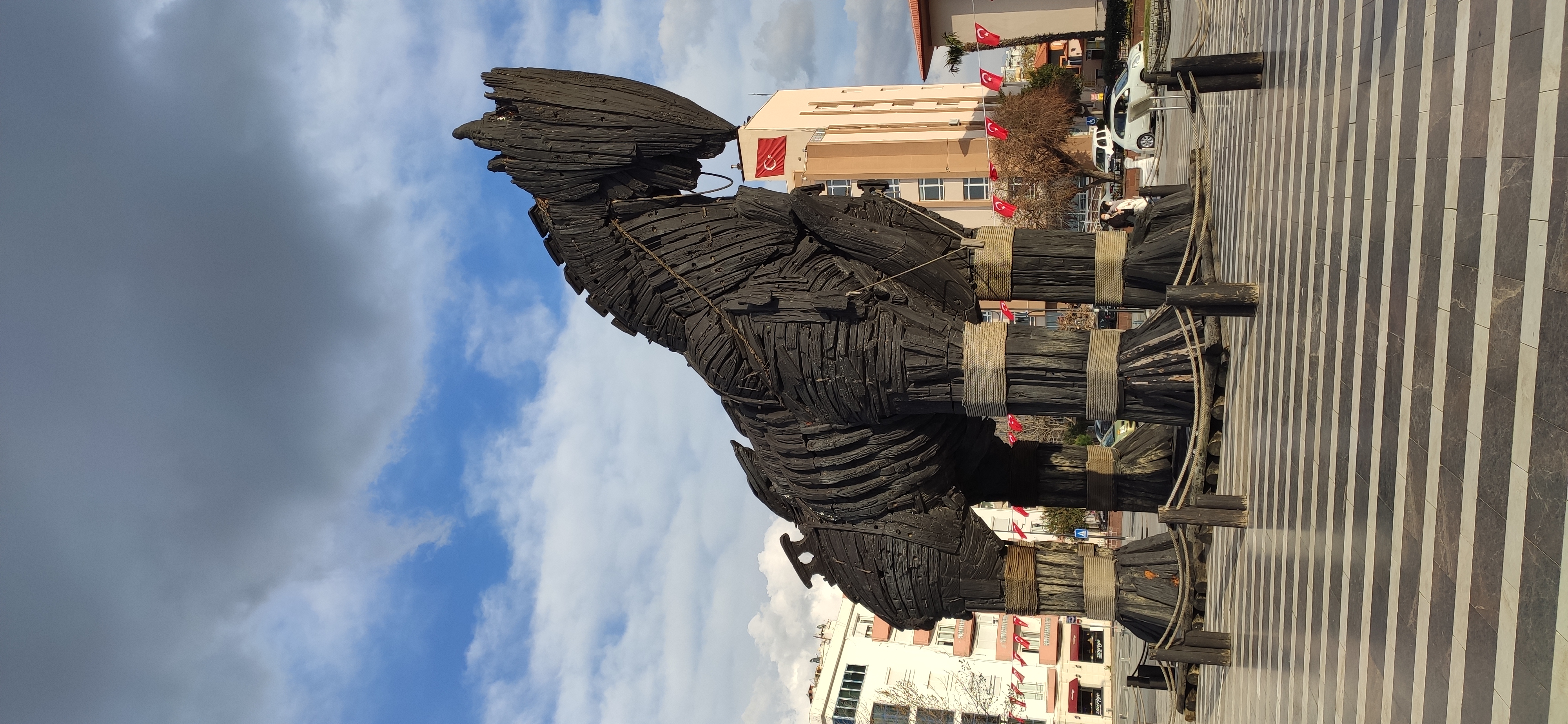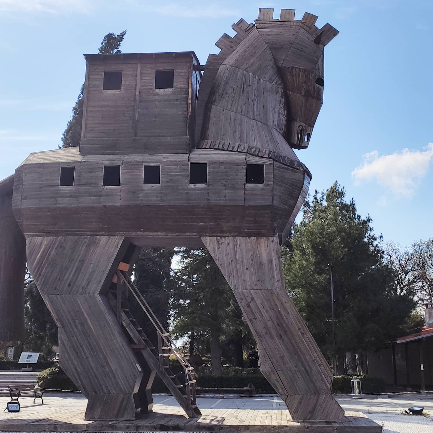 А что именно до коня - ты же не удивляешься, что Колосс Родосский пролежал на месте падения 900 лет нетронутым, и его арабы вывезли и переплавили уже в 7 веке н.э., когда захватили остров. Так и тут - не сгорел конь сразу при пожаре, свалили его куда-то на свалку, засыпали землёй. Если дерево было хорошо просмолено, да ещё на холме (вода стекает) - вполне могло пролежать в земле до нашего времени... Другой вопрос, что это может быть не конь, конечно, а навесная деревянная комната или галерея со сложными опорами.