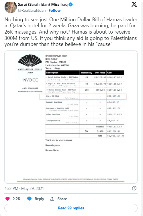 Что не отменяет того факта, что деньги ООН идут в Катар, а не в Газу, что опять же, лучше, чем если бы они шли в Газу. Правда, Нетаньяху постарался и помог перевести деньги из Катара в Газу, чтобы на них можно было построить тоннели и ракеты, но это уже не вина ООН.