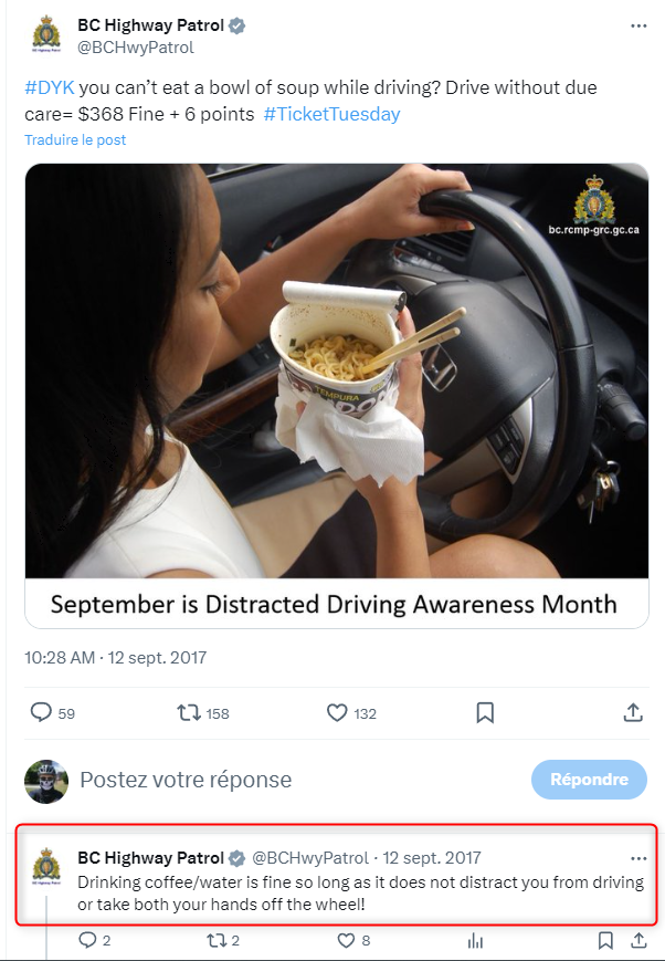 Ты сам-то читаешь, что отправляешь? Найди-ка там пункт про бутылку с водой? (если что, Distracted Driving - это вообще про другое)