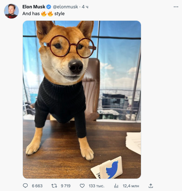 Ну а тут он явно кого-то очень знаменитого косплеит - с чёрной водолазкой и очками...