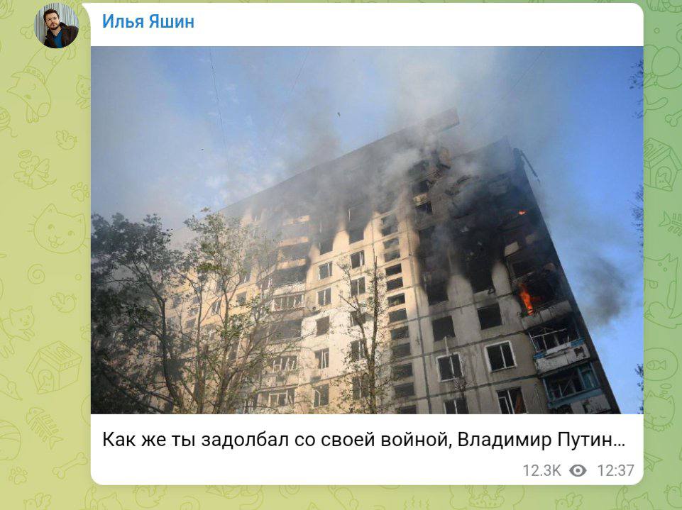 И если Яшин это просто пишет в своих соцсетях то это его дело, а если будет то же самое рассказывать европейцам, то пусть лучше возвращается в Россию. Байден кстати встречается то с Навальной, то с Кара-Мурзой, а вот его встречи с азовцами я не помню.