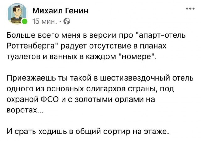 А то, что это "апарт-отель", и что его владелец, оказывается, г-н Ротенберг - вот это слабо стыкуется с фактами.