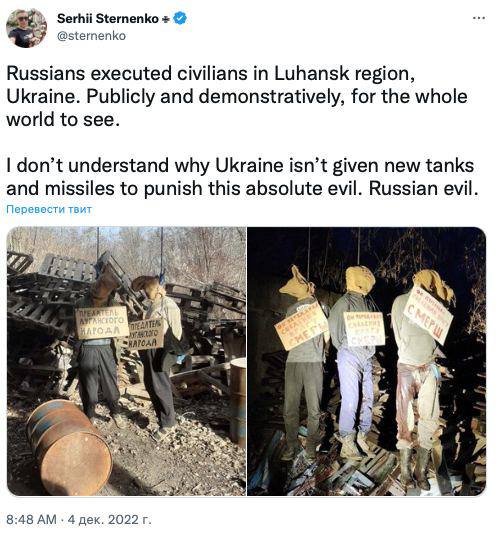 Ну а здесь «всё очевидно» же ж. Доктор сказал в морг, значит, в морг. Все россияне - убийцы и насильники, россияне в форме - убийцы и насильники в квадрате. Вот еще только на моб.пункт пришёл - уже убийца, и зачем тогда журналистам интересоваться, в каких условиях живешь, что с тобой происходит, ты ж убийца? Надо гыгыгыкать в эфире: «Смотрите, гыгы, как им плохо живется, так им и надо, гыгы». Весьма возможно, что ровно такую же подачу это коллективное бессознательное ожидает и для репортажей о пытках в тюрьмах: ну а чего, всё правильно, чего тут нюни рассусоливать с преступниками всякими, всё правильно с ними творят, гыгы.