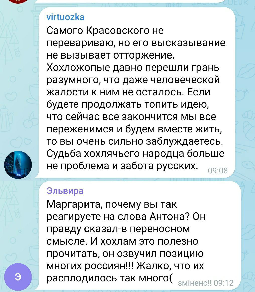 Вот комменты от обычных россиян. И это от них льётся безостановочно 24/7 уже очень много времени. Такие как Красовский лишь публично озвучивают желания большинства россиян.