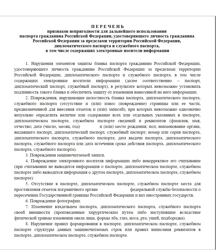 7. Изменение владельцем паспорта, дипломатического паспорта, служебного паспорта своей внешности (произведенные хирургическим путем либо наступившие вследствие физической травмы изменения овала лица, формы лба, глаз, носа, рта, ушей, подбородка).